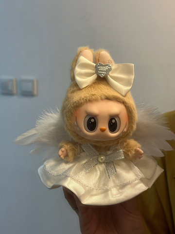 Enchanting Silver Angel Dress & Wings Outfit for Labubu Dolls – Elegant & Versatile Design