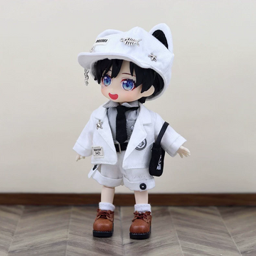Stylish OB11 Doll Outfit Set - Black & White Jacket, Shorts, Hat & Bag for 12-inch BJDs | High-Quality & Durable