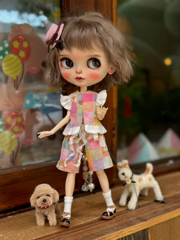 Vintage Patchwork Blythe Doll Outfit – Colorful Summer Ensemble for Play & Display