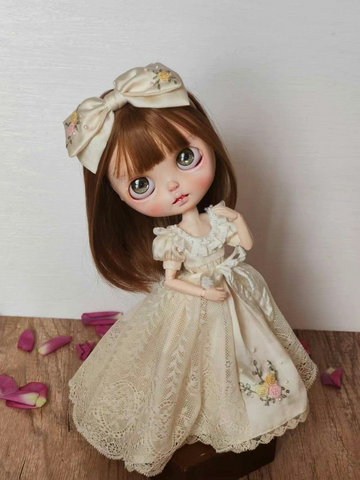 Exquisite Vintage BLYTHE Doll Outfit: Lace & Floral Elegance with Pearl Accents