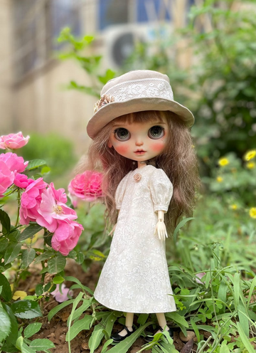Vintage Blythe Doll Outfit - Elegant Floral Dress & Lace Hat for Collectors, Photo Shoots & Displays