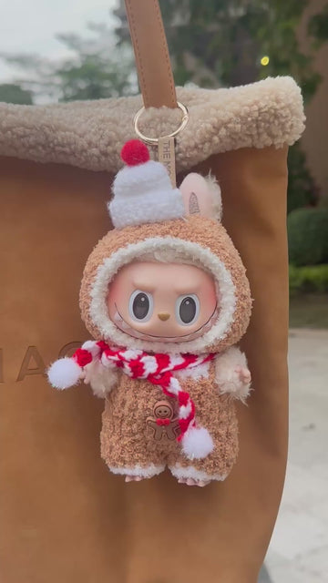 Festive Gingerbread LABUBU Doll Outfit – Cozy Hat, Scarf & Clothing Set for Holiday Fun!