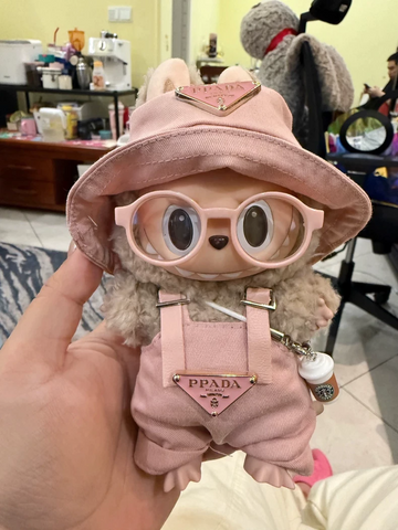 Whimsical Labubu Doll in Pink Prada Outfit – Adorable Collectible with Metallic Accents