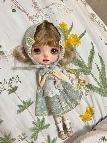 Vintage Floral Blythe Doll Outfit - Handmade Pastel Lace Dress for Collector