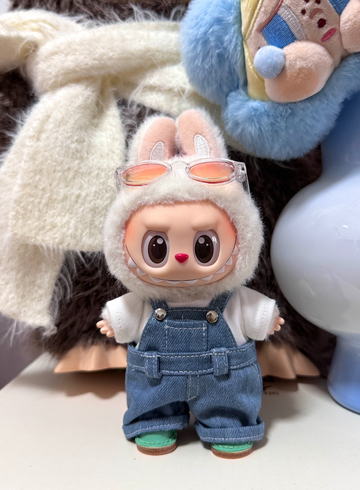 Stylish Denim & Sweater Outfit for Labubu Doll – Adorable Collectible with Bunny Ears & Sunglasses