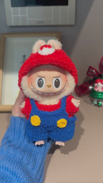 Handmade Labubu Super Mario Outfit – Vibrant Red Hat, Blue Overalls & Plush Design for Collectors & Play
