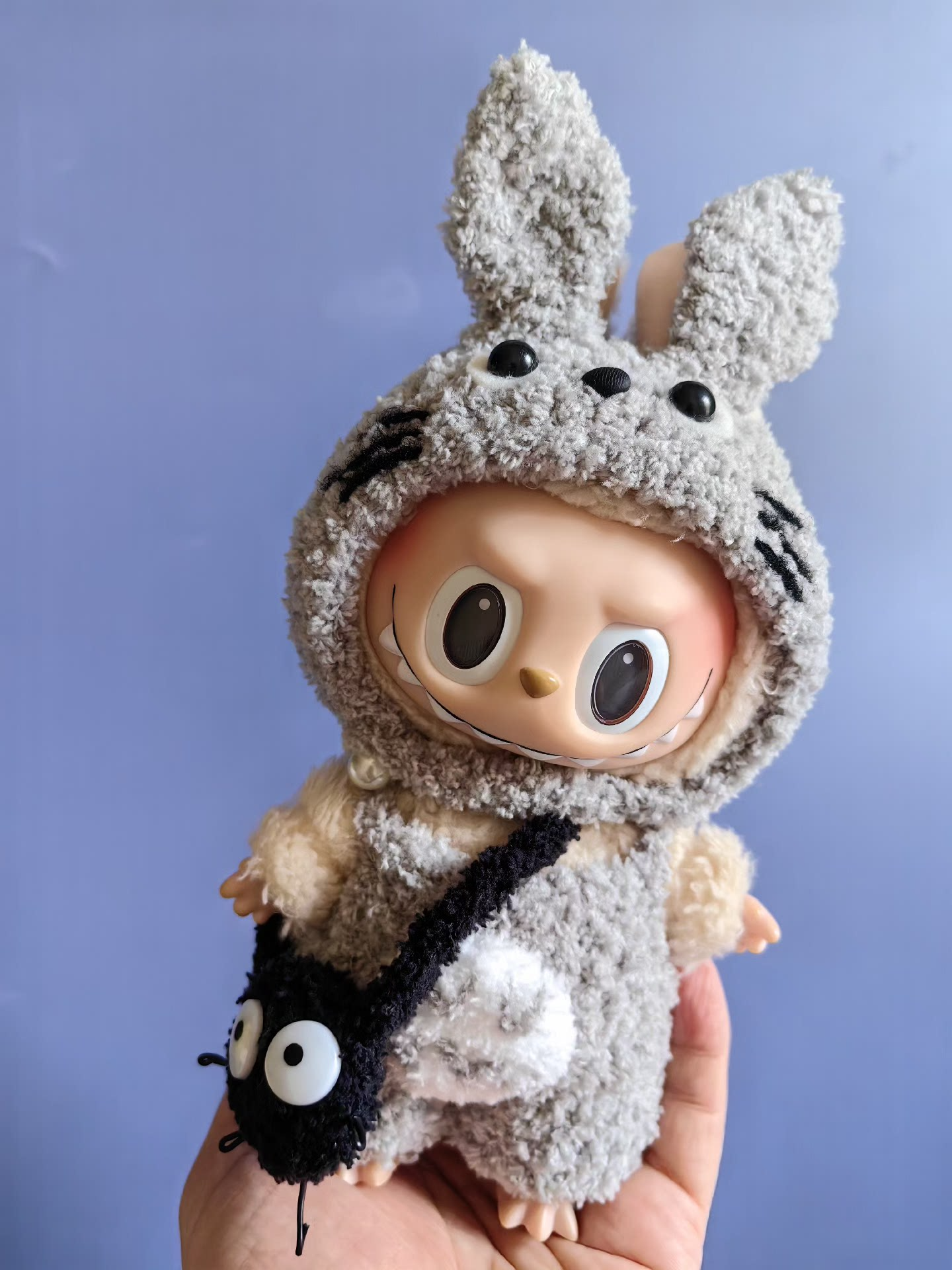 Whimsical Labubu Doll in Cozy Totoro Outfit – Soft Plush Collectible with Hat & Pants
