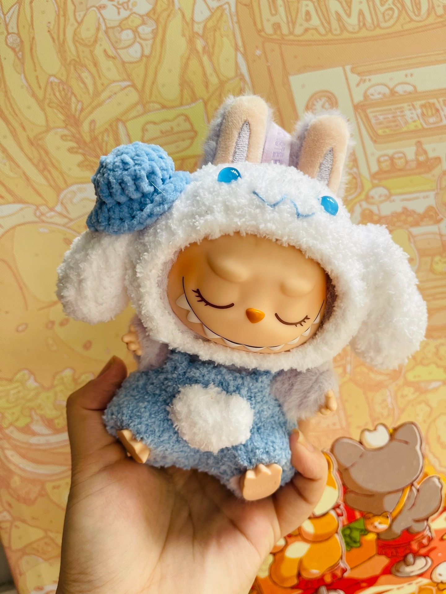 Adorable Labubu Bunny Outfit – Soft Plush Pastel Blue Hooded Doll Costume