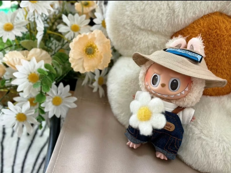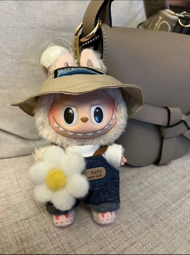 Adorable LABUBU Doll Outfit – Denim Overalls, Hat & Flower Accessory | Premium Fit