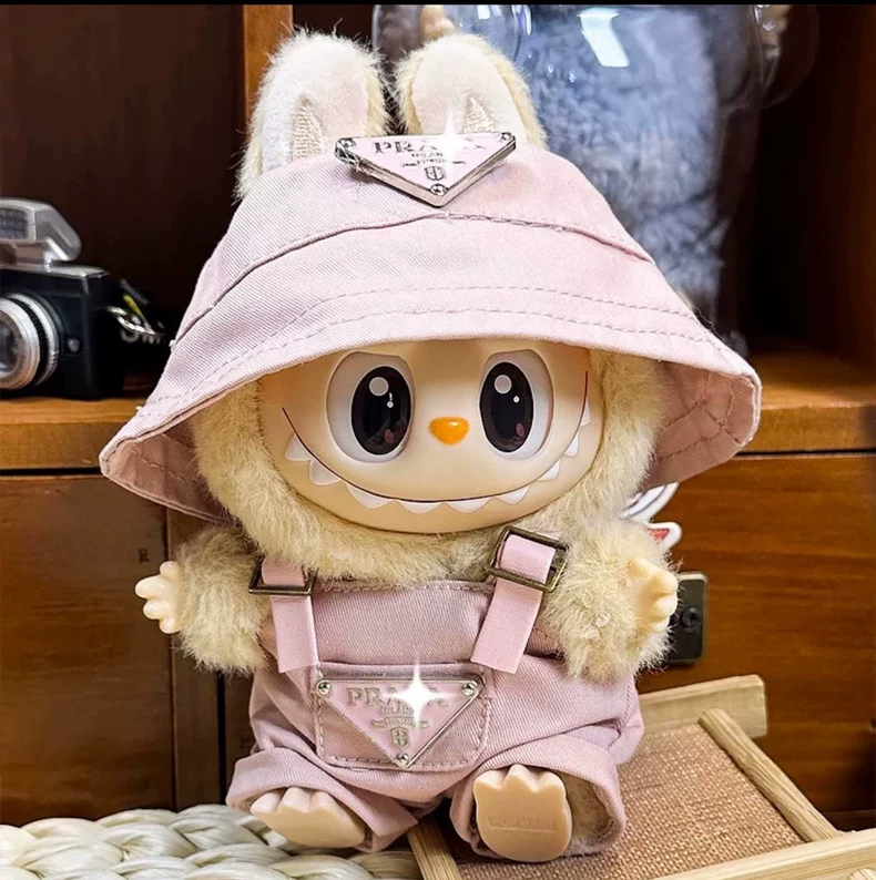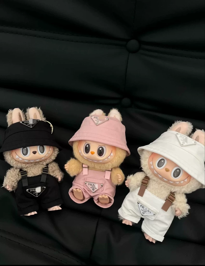 Adorable Labubu Doll Outfit – Premium Cotton Overalls & Hat in Black, Pink, White