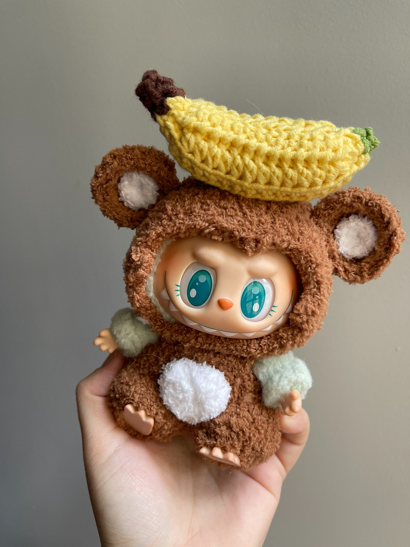 Adorable Labubu Monkey Outfit with Banana Hat – Plush & Playful Doll Clothes for Collectors