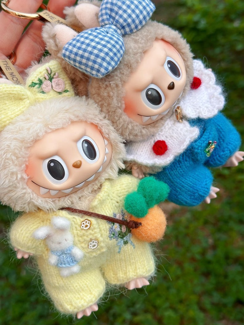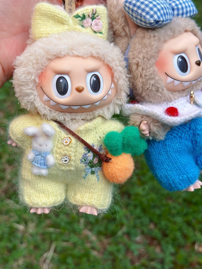Adorable LABUBU Outfit for 17cm Figurines – Knit Sweater, Butterfly Bow & Carrot Accessory