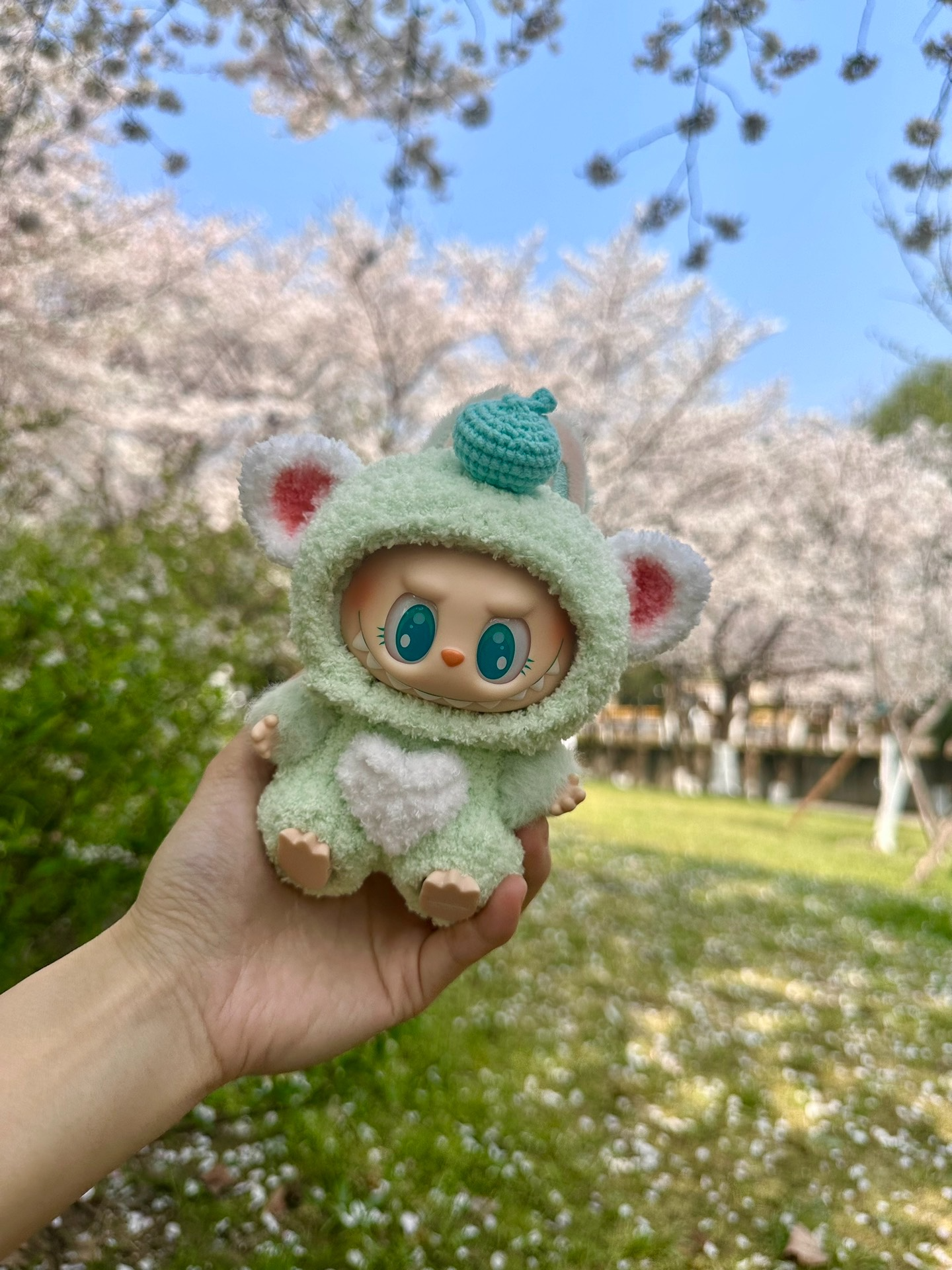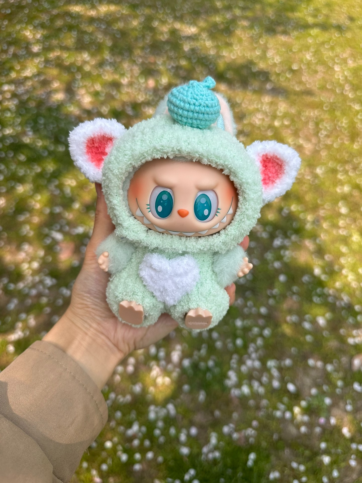 Adorable Labubu Bear Outfit – Cozy Hat & Jumpsuit, Pastel Plush Doll Ensemble for Collectors