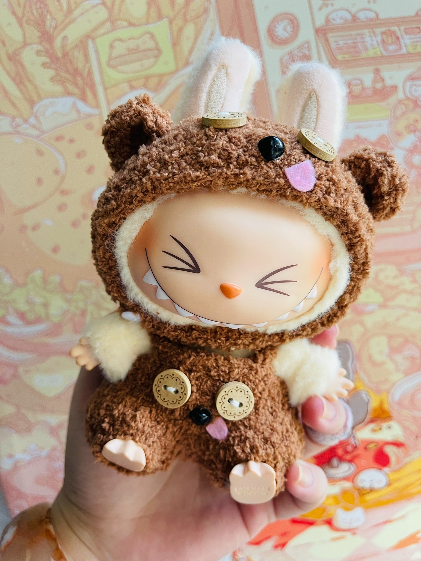 Adorable Plush Bear Outfit for Labubu Dolls – Soft & Whimsical Collectible Costume