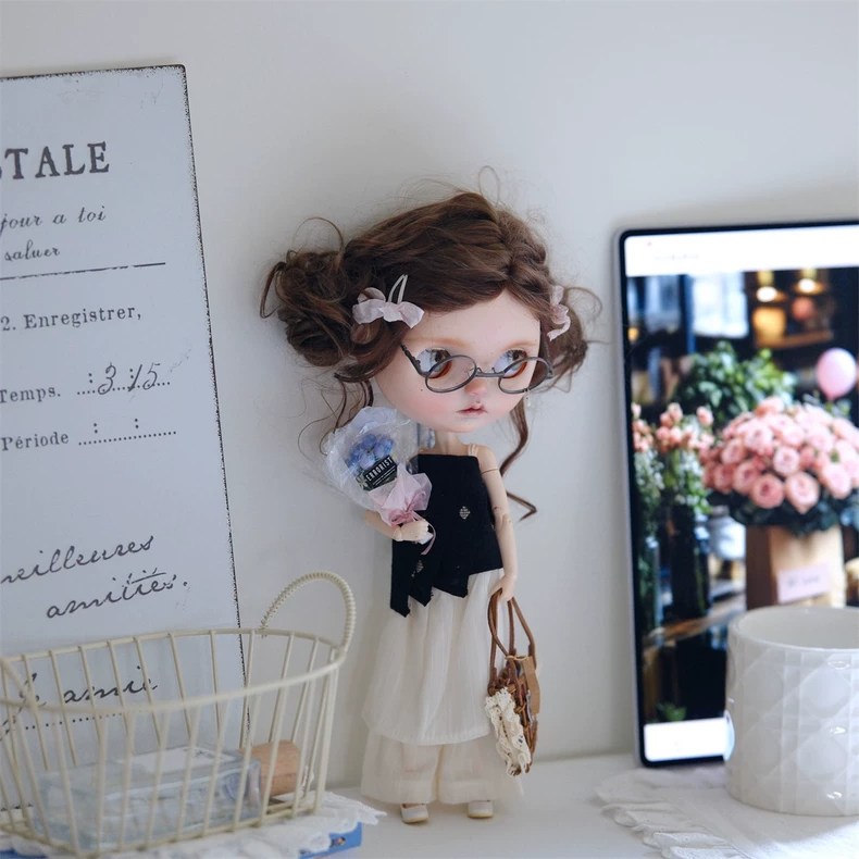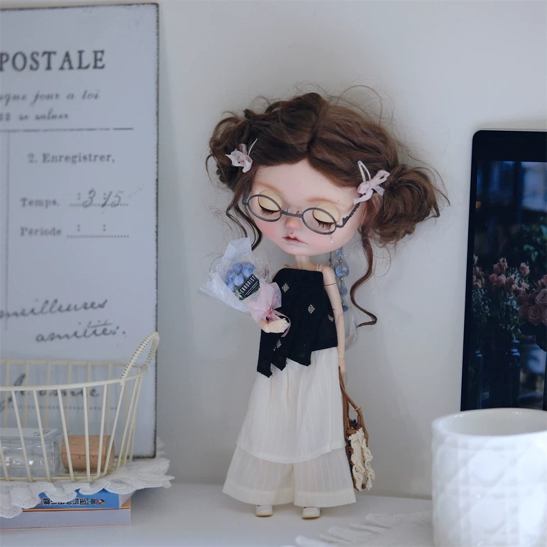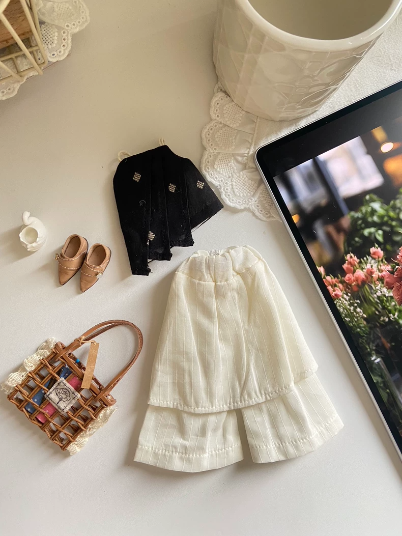 BLYTHE Doll Clothes Black White Outfit Tank Top Skirt Set for OB22 OB24 Premium Quality Collector Edition