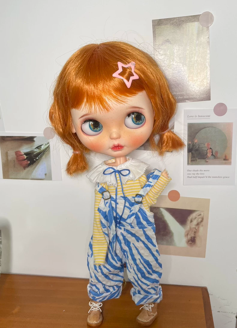 Charming Blue Zebra Jumpsuit & Yellow Striped Top for BLYTHE Dolls | OB22-OB24 Fit