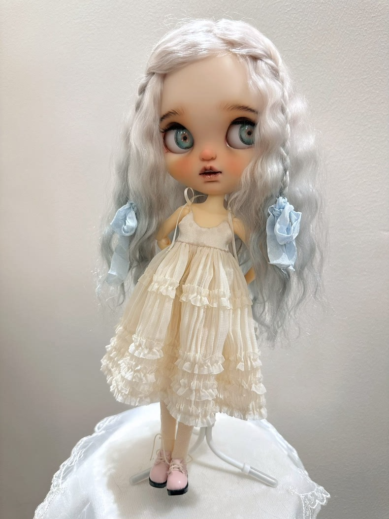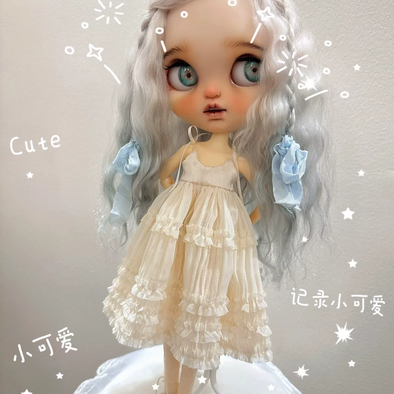 Charming Blythe Doll Field Ensemble: Elegant Satin Dress with Silk Ribbons for ob22 & ob24 Dolls