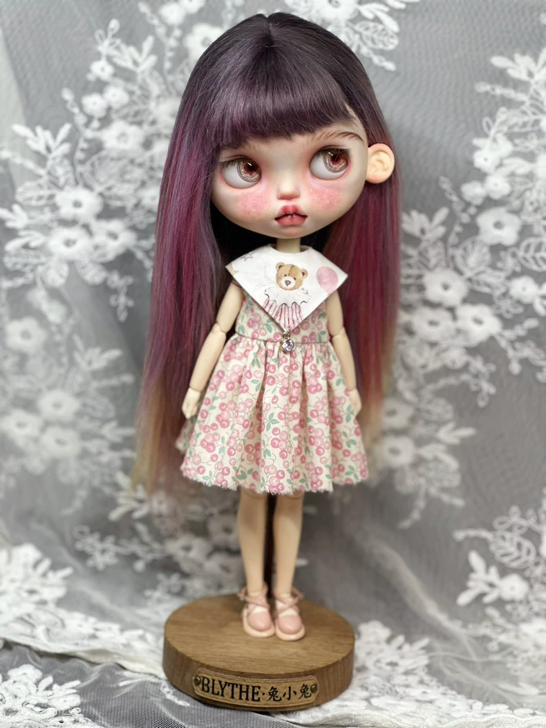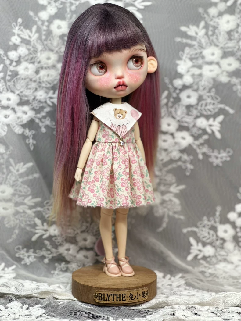 Charming Cherry Blythe Doll Dress with Teddy Bear Collar – Fits ob22, ob24, az Bodies