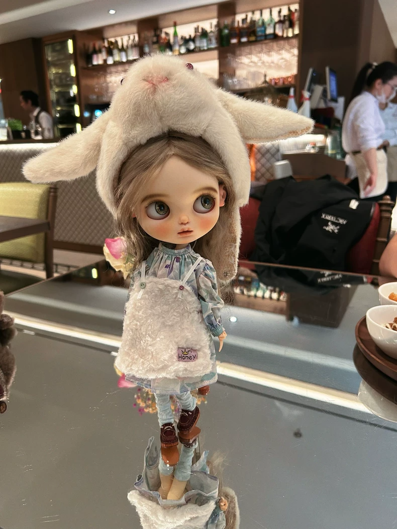 Charming Handmade BLYTHE Doll Outfit: Bunny Hat, Floral Dress & Cozy Socks