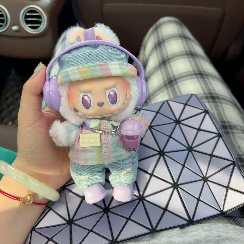 Charming LABUBU Doll Outfit – 6-Piece Playful Pastel Ensemble with Headphones & Cup