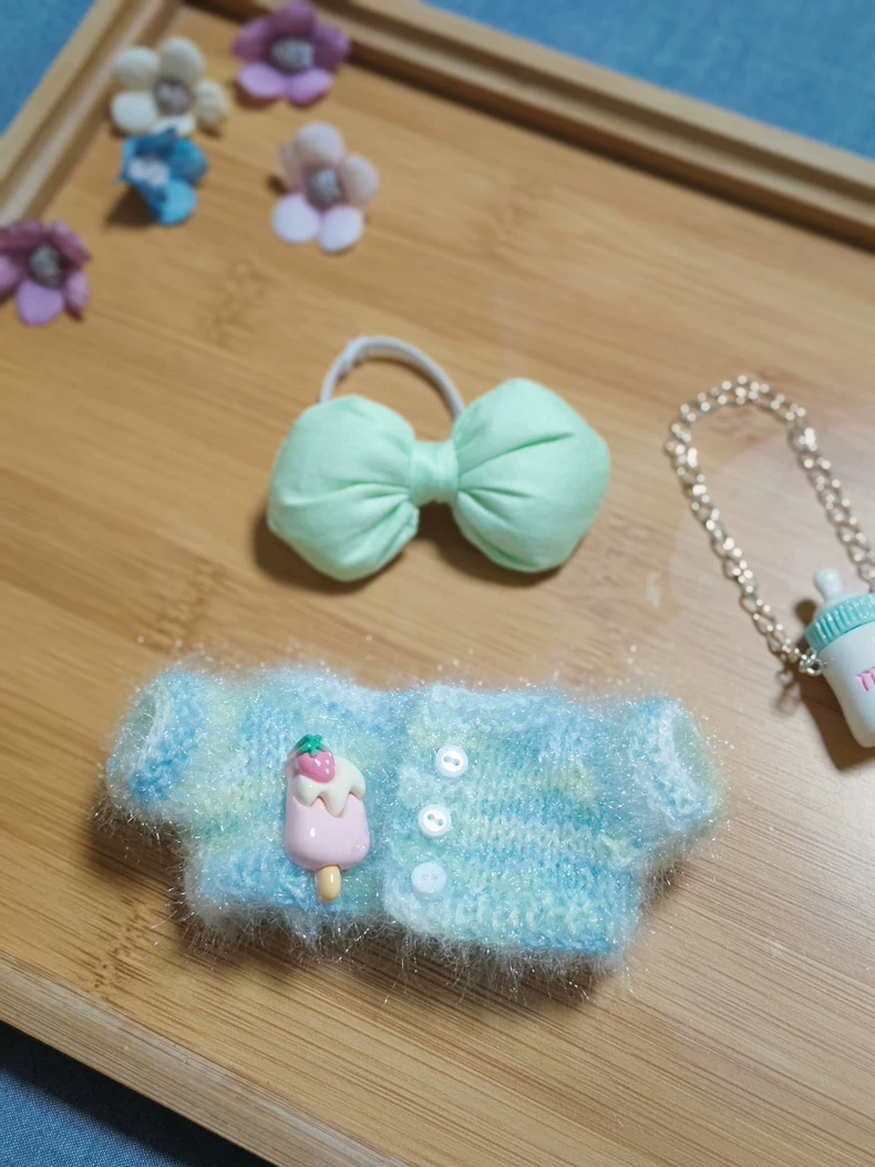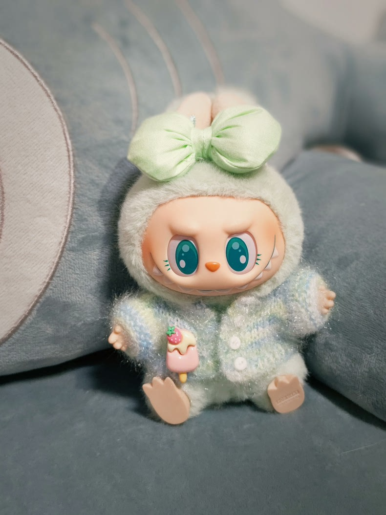 Charming Labubu Doll Outfit – Cozy Sweater with Ice Cream Charm & Mint Bow | Customizable & Premium Quality