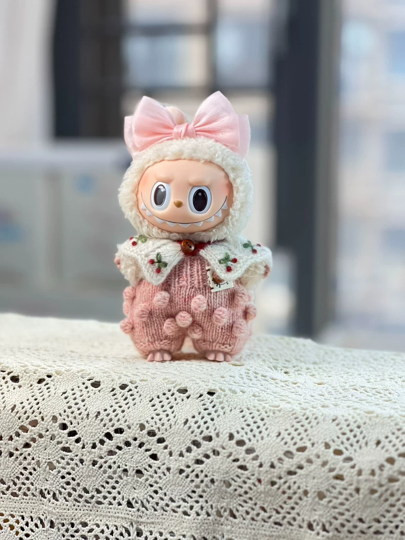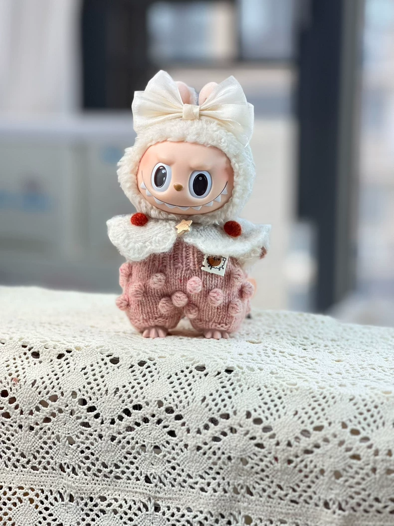 Charming Labubu Knit Outfit: Soft Pastel Design with Bow for Collectible Figures