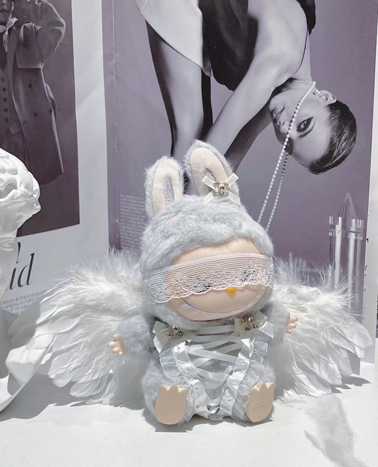 Whimsical Angelic LABUBU Doll Outfit – Feathers, Lace & Elegant Wings for Collectible Play