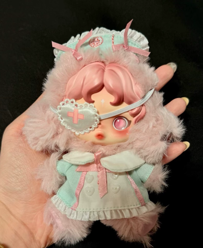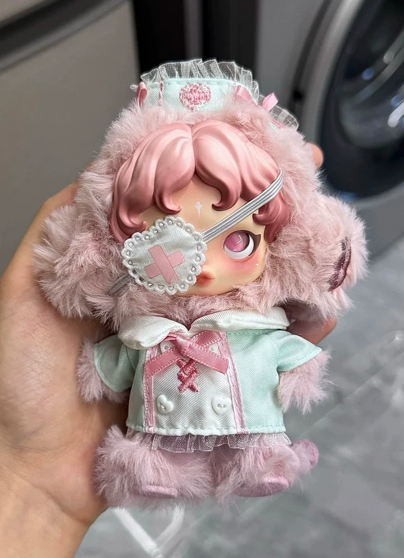Charming Mint & Pink Nurse Doll Outfit – Adorable Jacket & Eye Patch for Playful Fun!