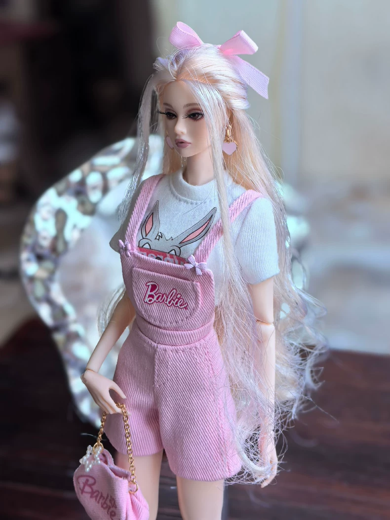 Charming Rabbit Ears BJD 1/6 Doll Outfit – Playful & Fashionable Pastel Pink Ensemble