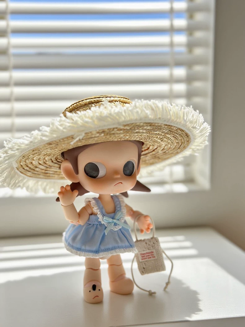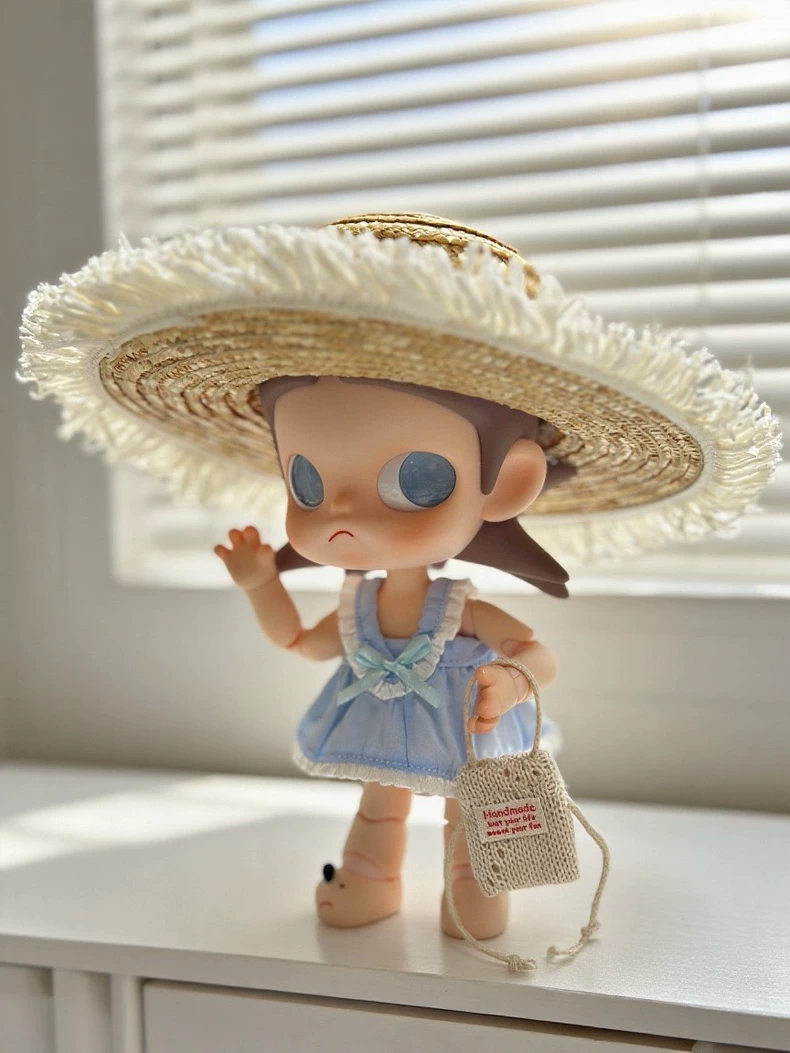 Charming Zsiga BJD 1/8 Butterfly-Knot Dress & Straw Hat Summer Outfit for Dolls