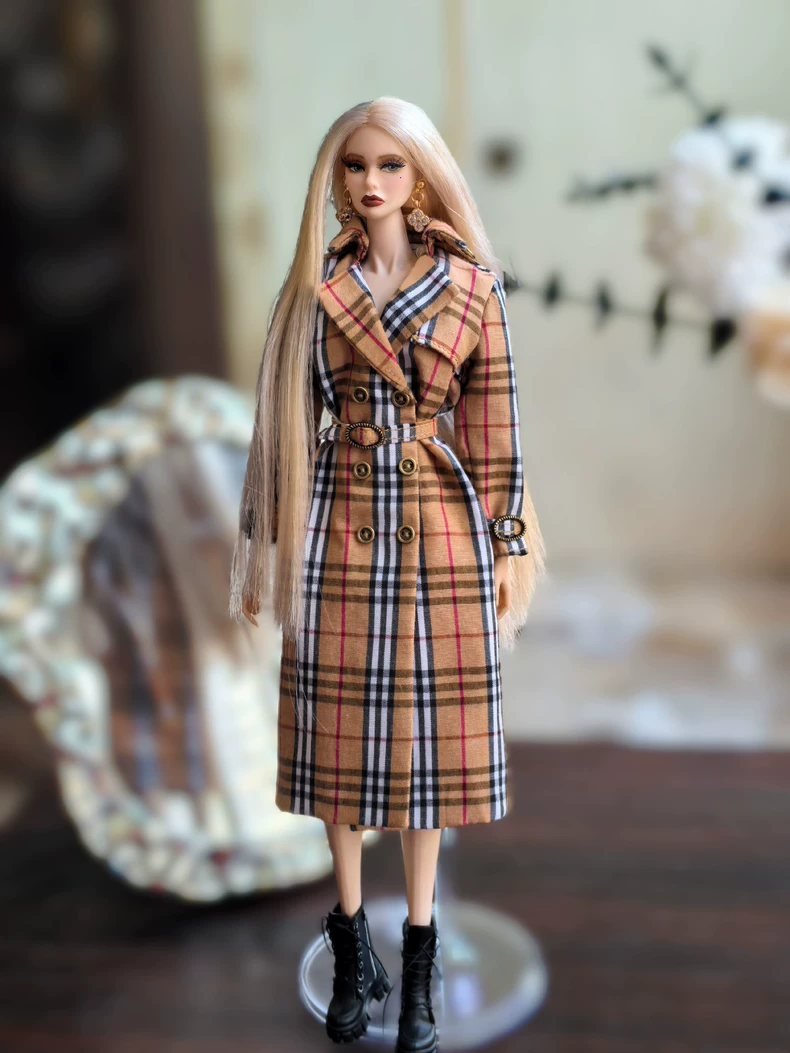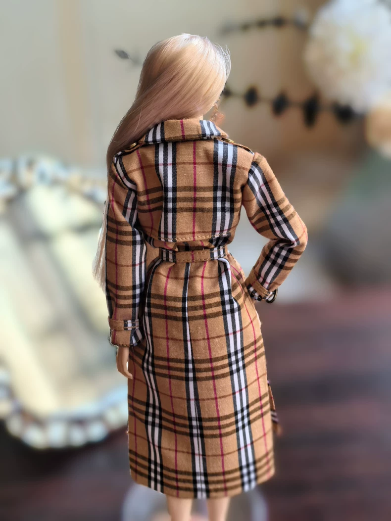 Classic Plaid Trench Coat Outfit for BJD 1/6 Dolls – Timeless Elegance & Premium Craftsmanship