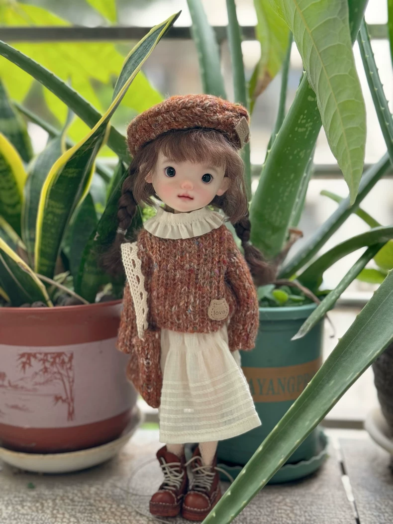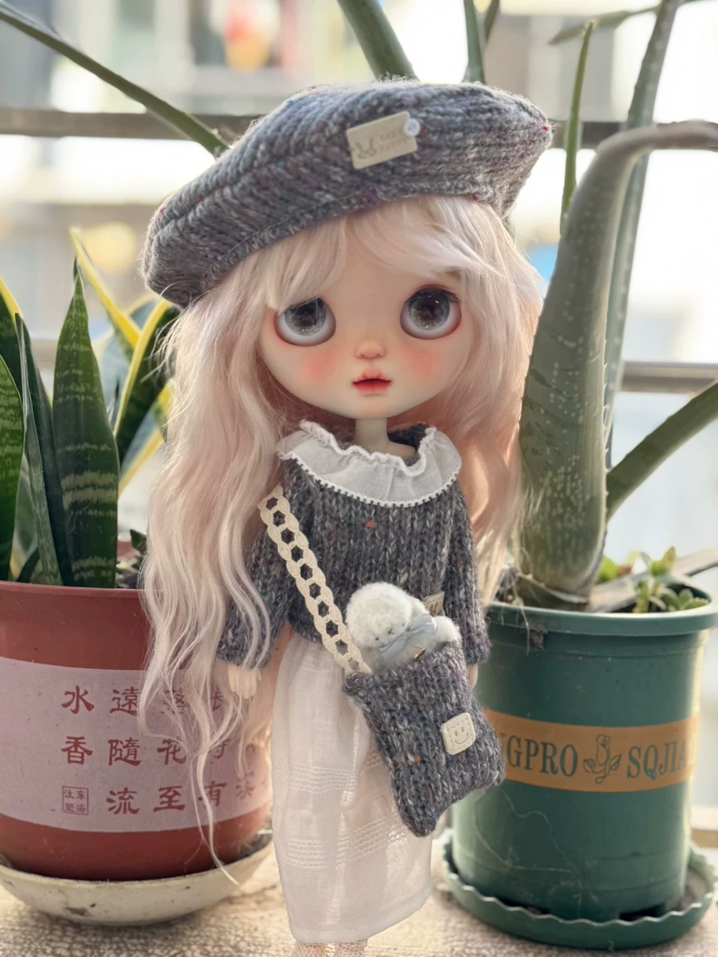 Cozy Autumn BLYTHE Outfit – Knit Sweater & Frilled Skirt Set for OB22/OB24 | Elegant Beret & Crossbody Bag