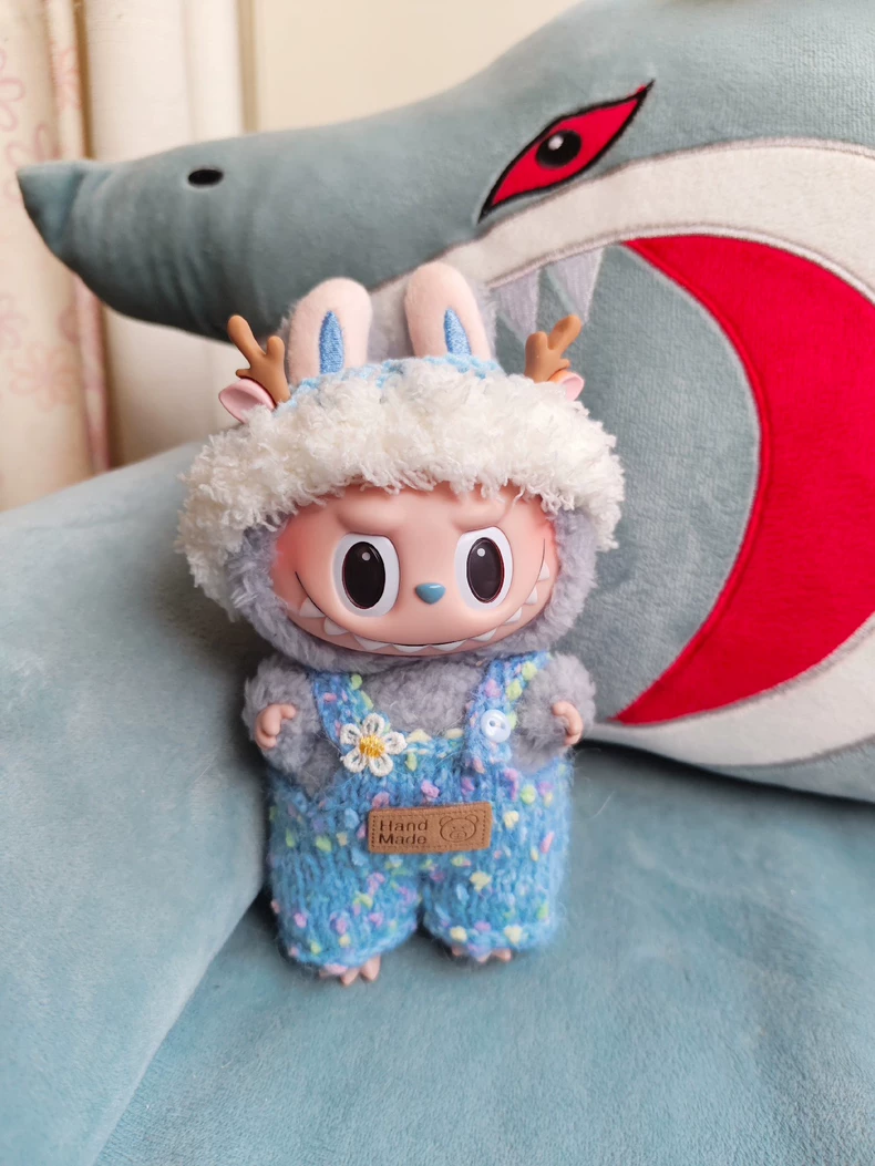 Custom LABUBU Outfit: Plush Hat & Overalls with Polka Dots – Durable, Adjustable & Handmade for Fans