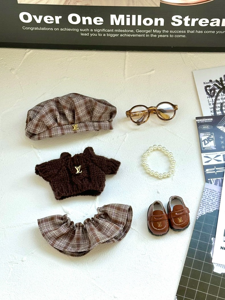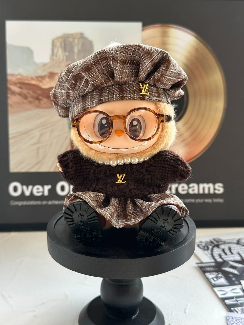 Stylish Labubu Doll Outfit: 6-Piece Chic Ensemble with Hat, Glasses & LV Details – Customizable & Trendy