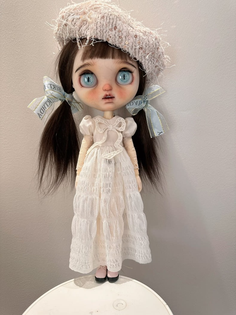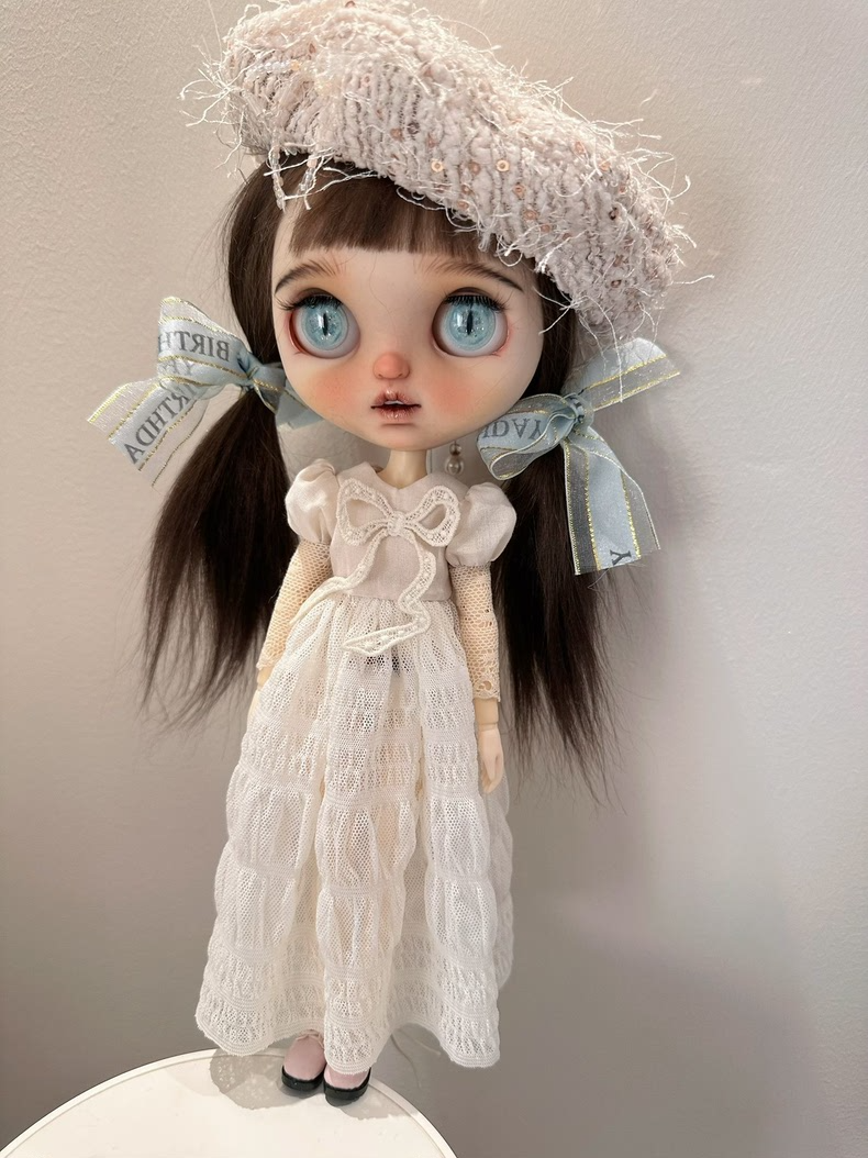 Elegant Blythe Doll Lace Dress & Beret Outfit for Ob24 Dolls | Premium Collector's Ensemble