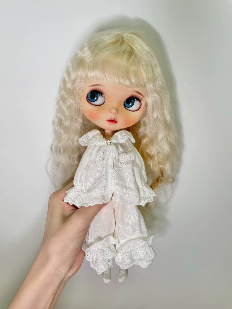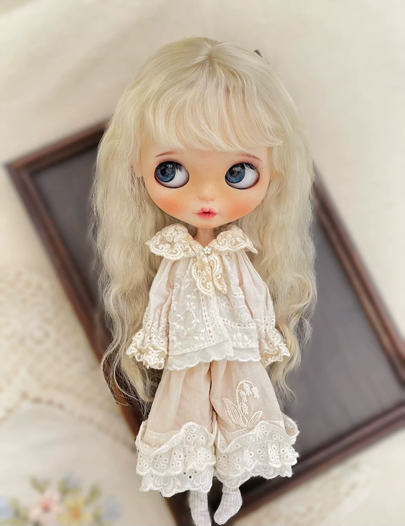 Elegant Blythe Doll Lace-Trimmed Outfit: Navy Blouse & Frilly Pants Set for Sophisticated Play & Collecting