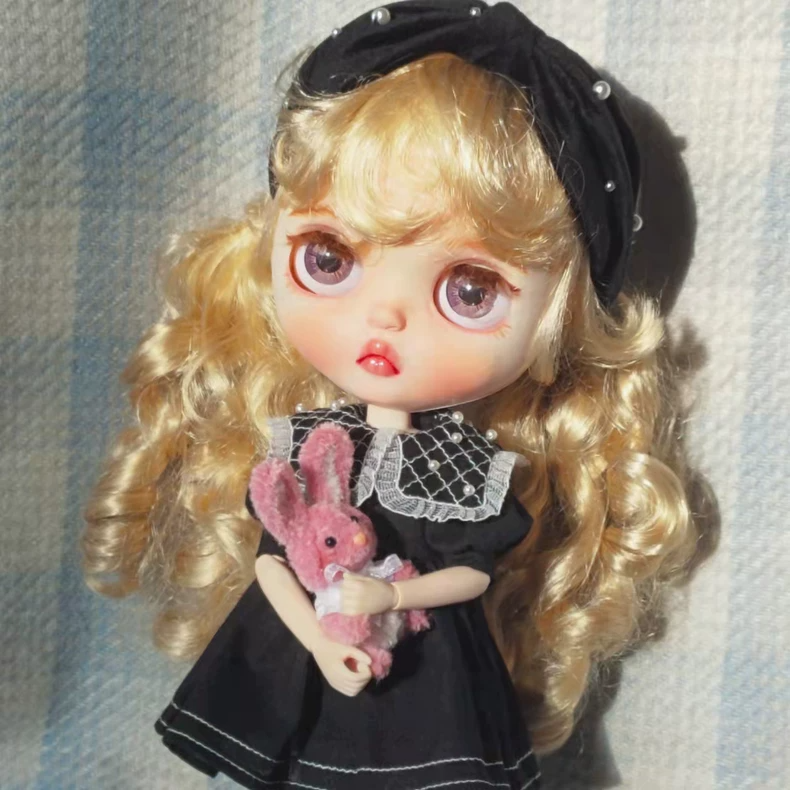 Elegant Blythe Doll Outfit: Pearl-Adorned Dress & Headband for Collectors
