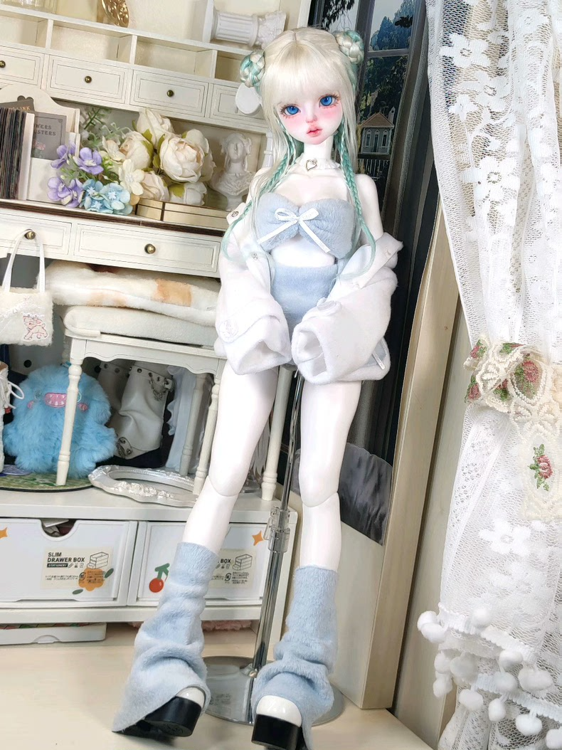 Elegant Pastel Winter BJD 1/4 Outfit – Plush Jacket & Accessories for Dolls