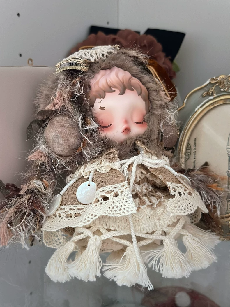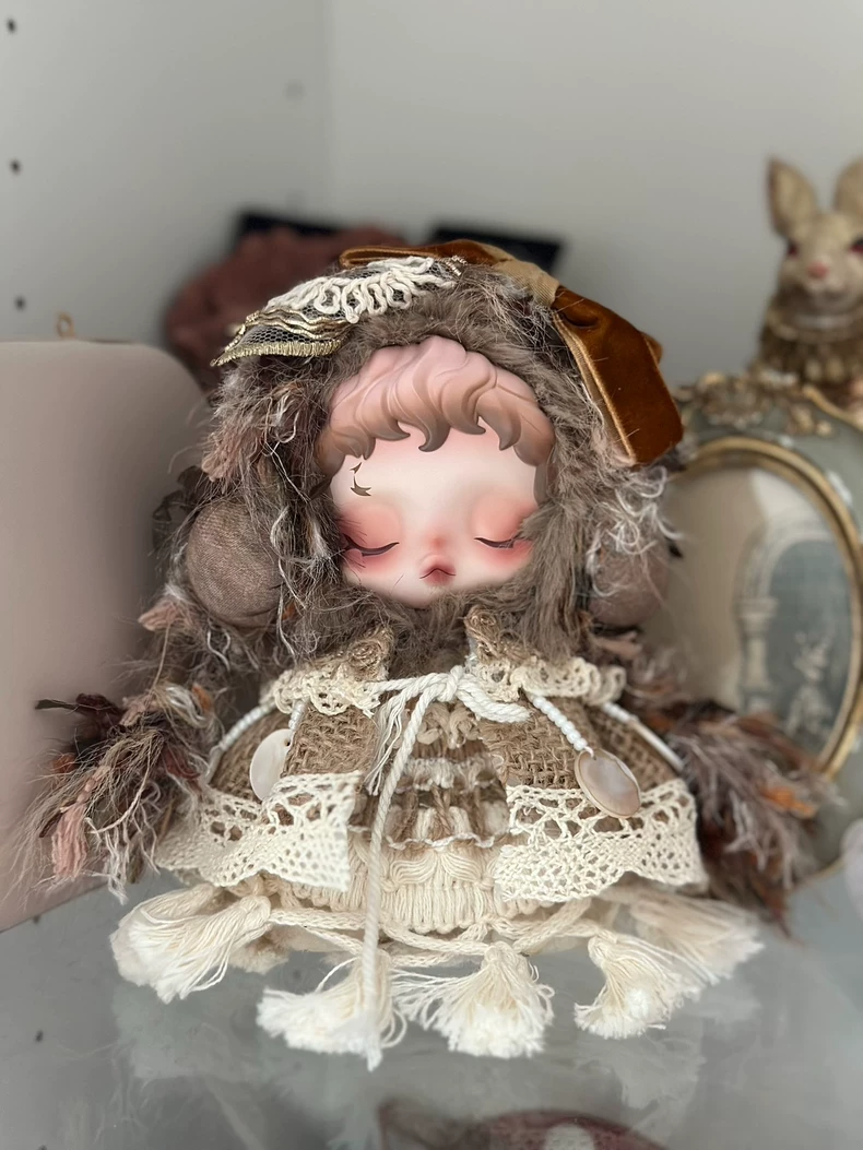 Elegant Skullpanda Doll Outfit: Luxe Lace & Plush Fabrics for Collectors