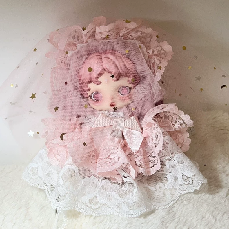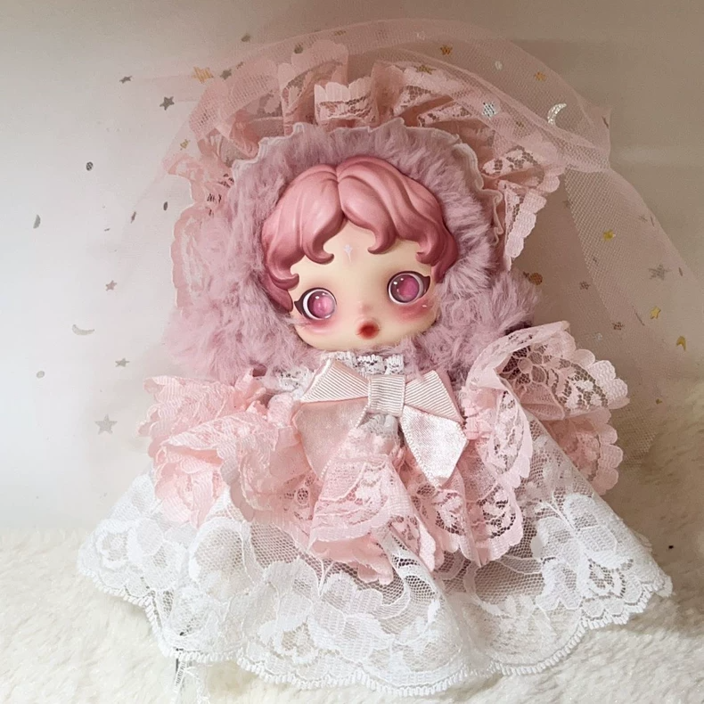 Elegant Skullpanda Doll Outfit: Luxe Lace & Satin Ensemble for Customizable Doll Attire