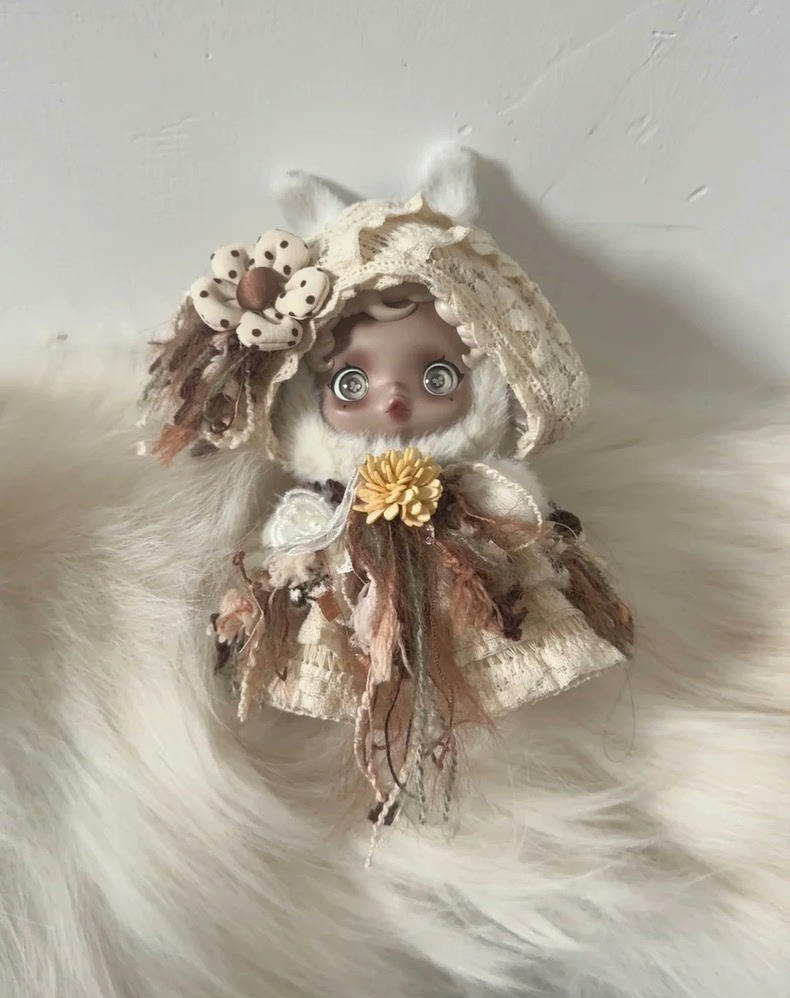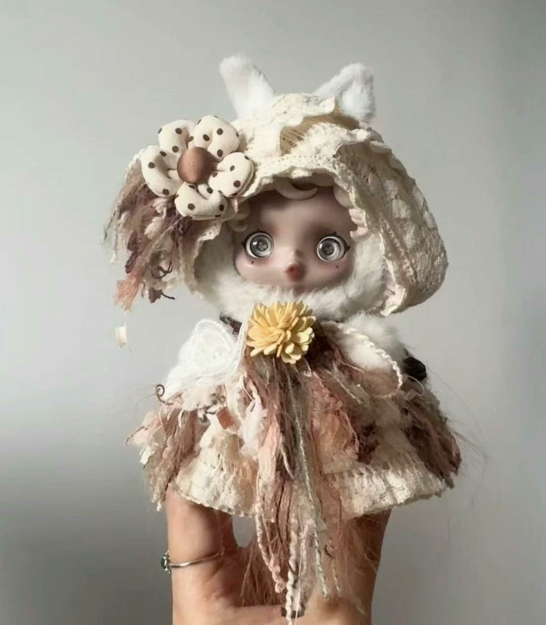 Enchanting Skullpanda Doll Outfit: Lace Bunny Ears & Floral Elegance