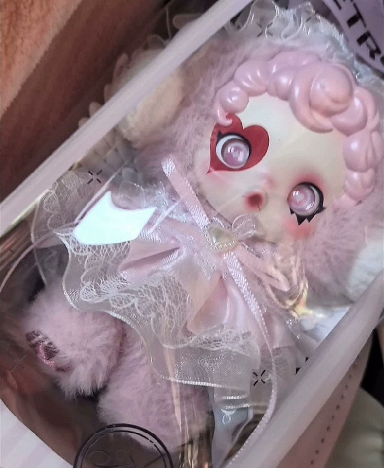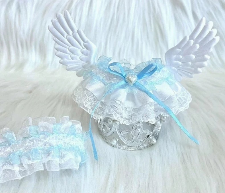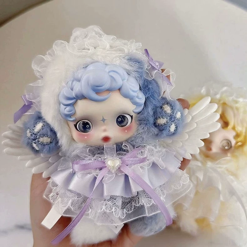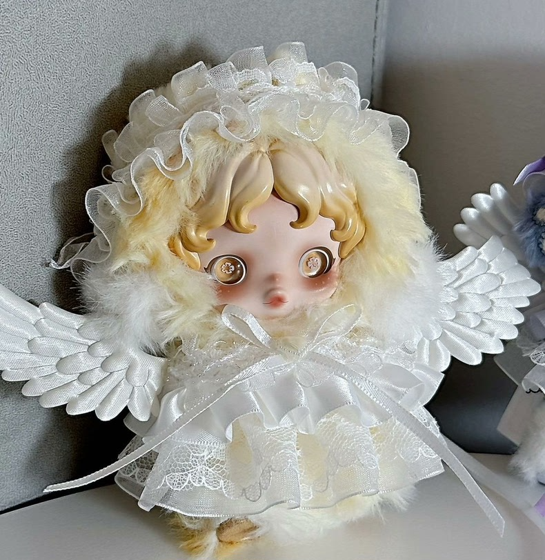 Exquisite Skullpanda Winter Symphony Outfit – Angelic Lace Dress with Wings, Pastel Collectible Fashion