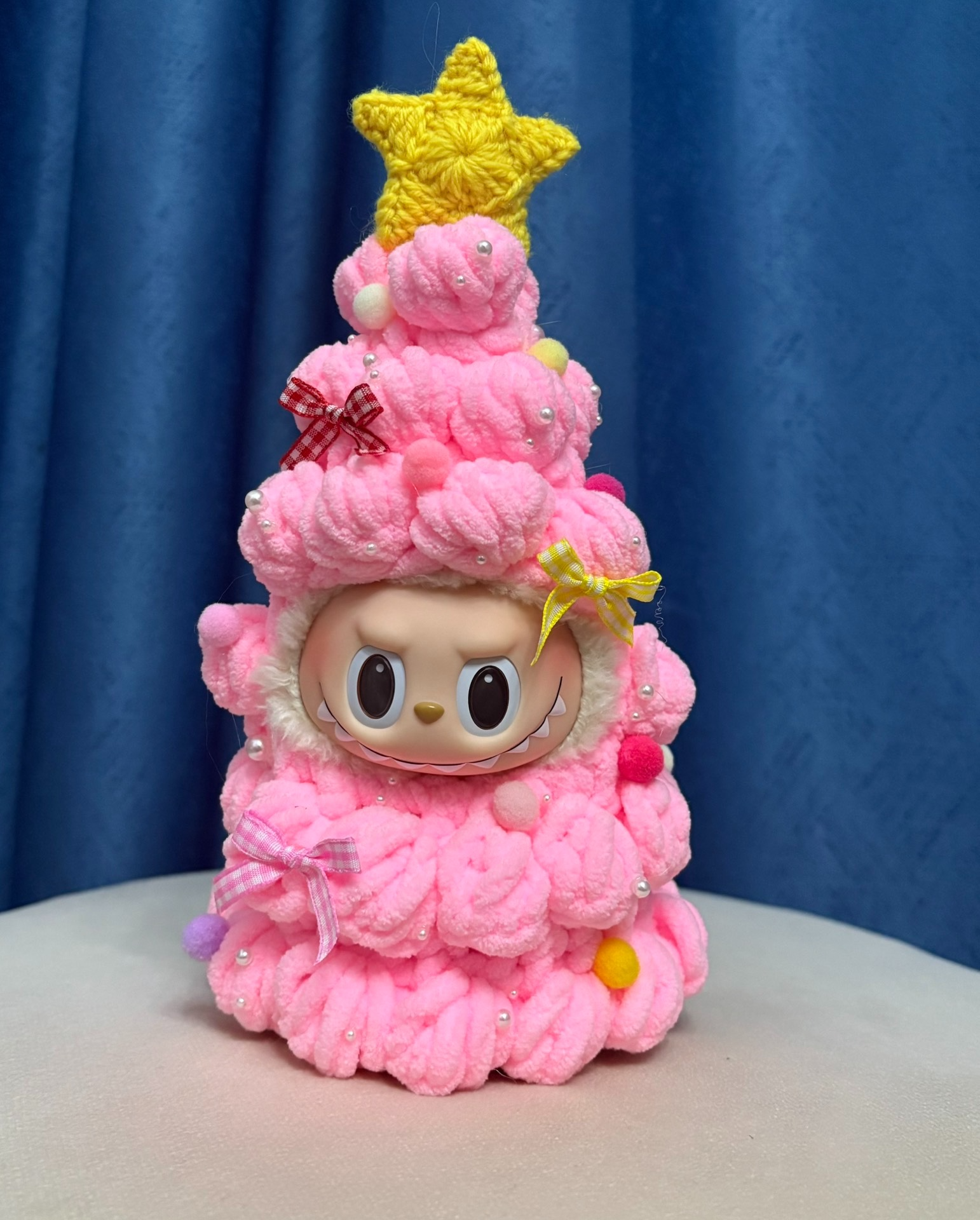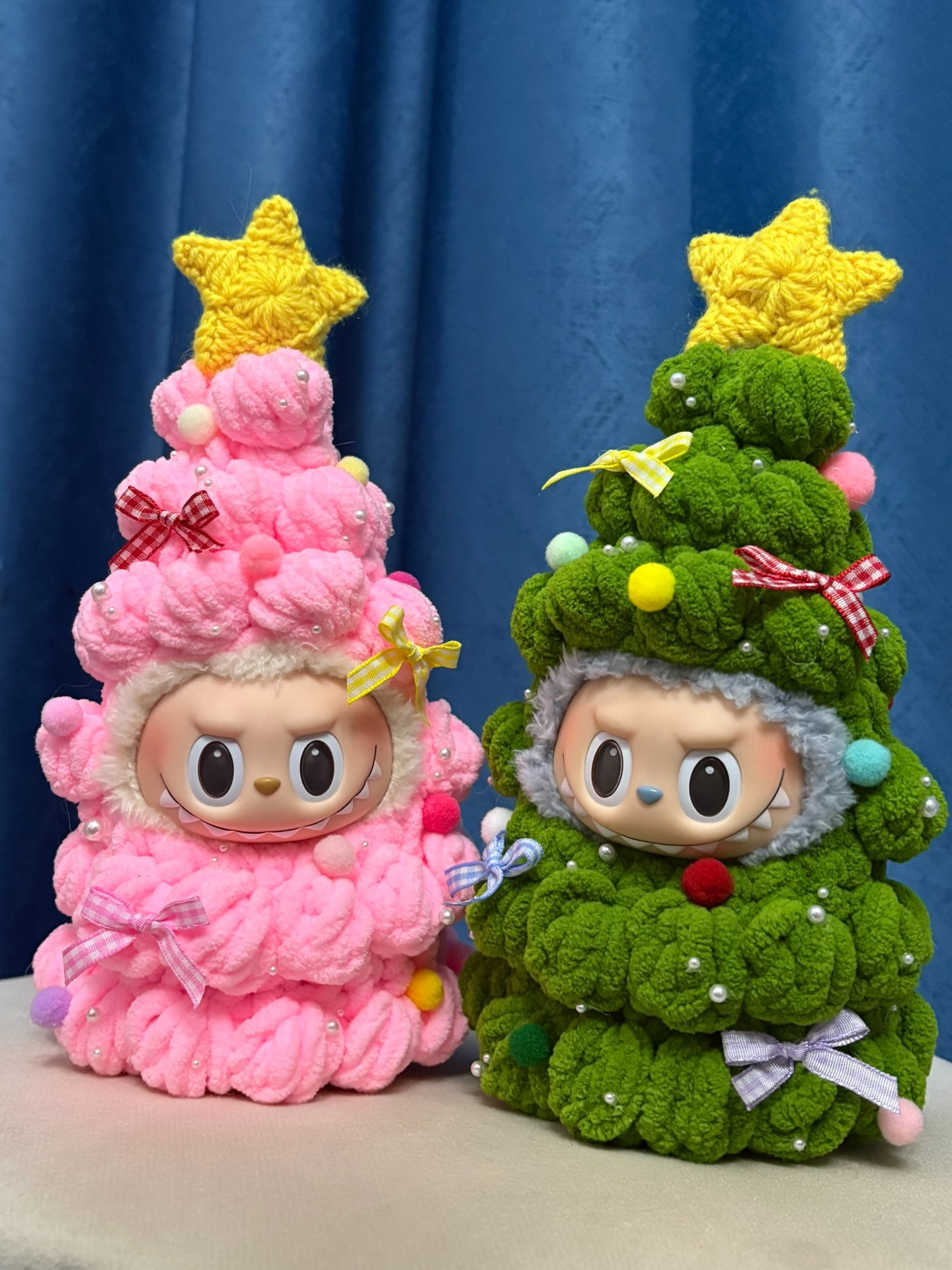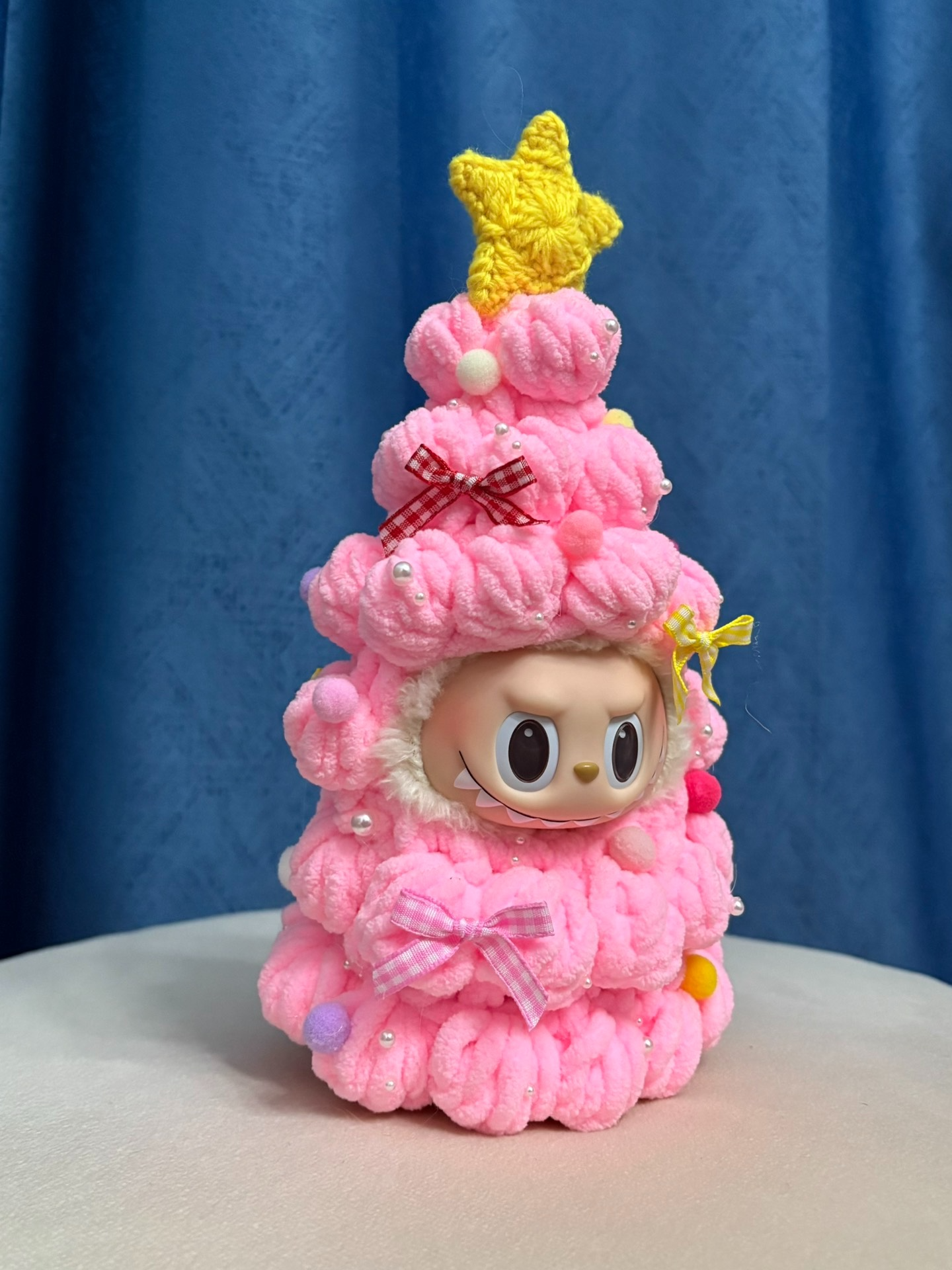 Festive Plush Christmas Tree Doll Outfits - Pink & Green with Yellow Star