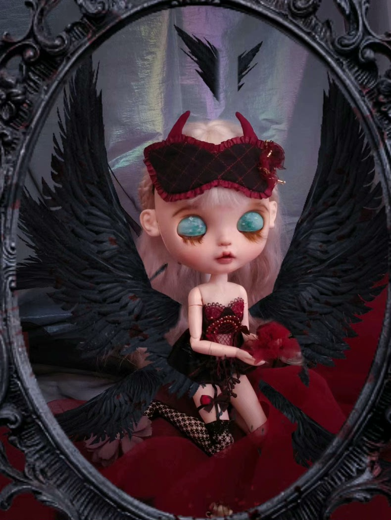 Gothic Blythe Doll Outfit: Dark Elegance with Lace & Velvet Ensemble