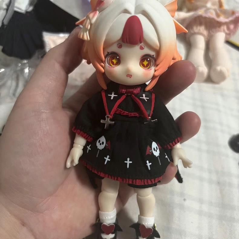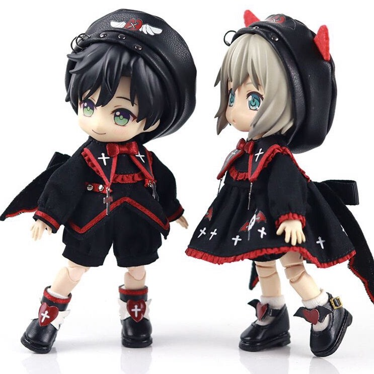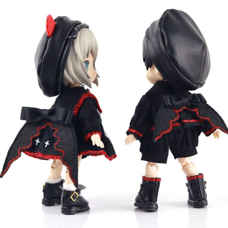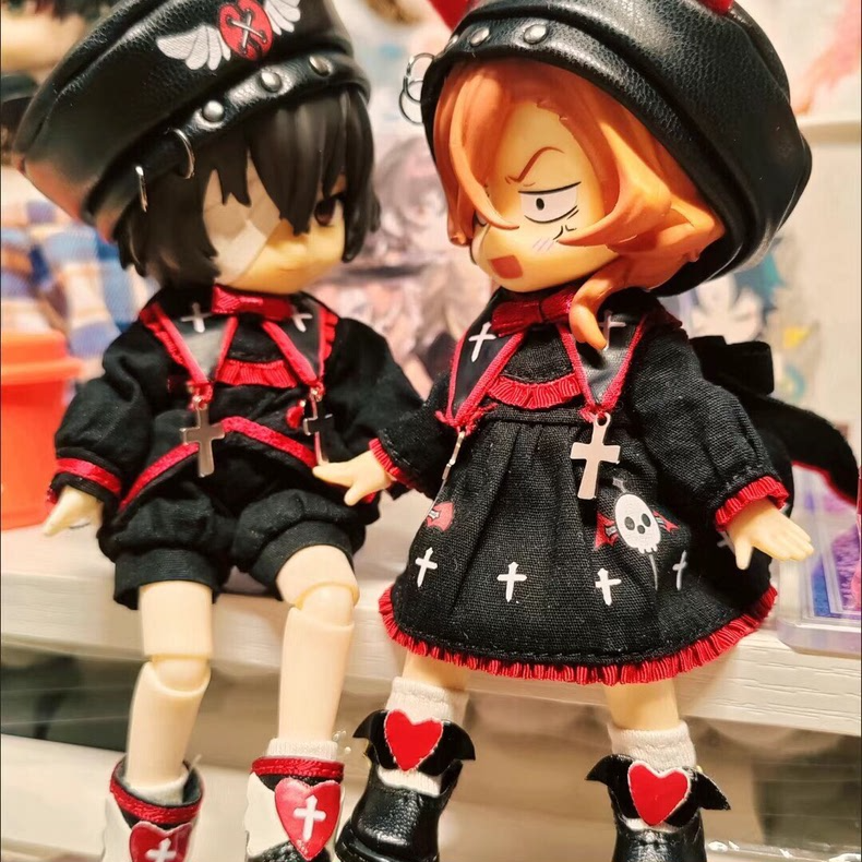 Gothic OB11 Doll Outfit: Premium Black & Red Ensemble with Intricate Details