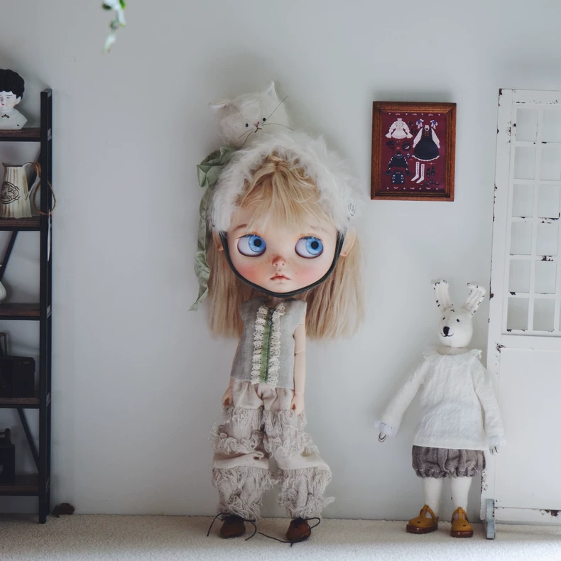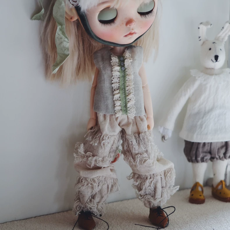 Handmade Blythe Doll Outfit: Lace Sleeveless Top & Fringed Ruffled Pants, Adjustable Fit
