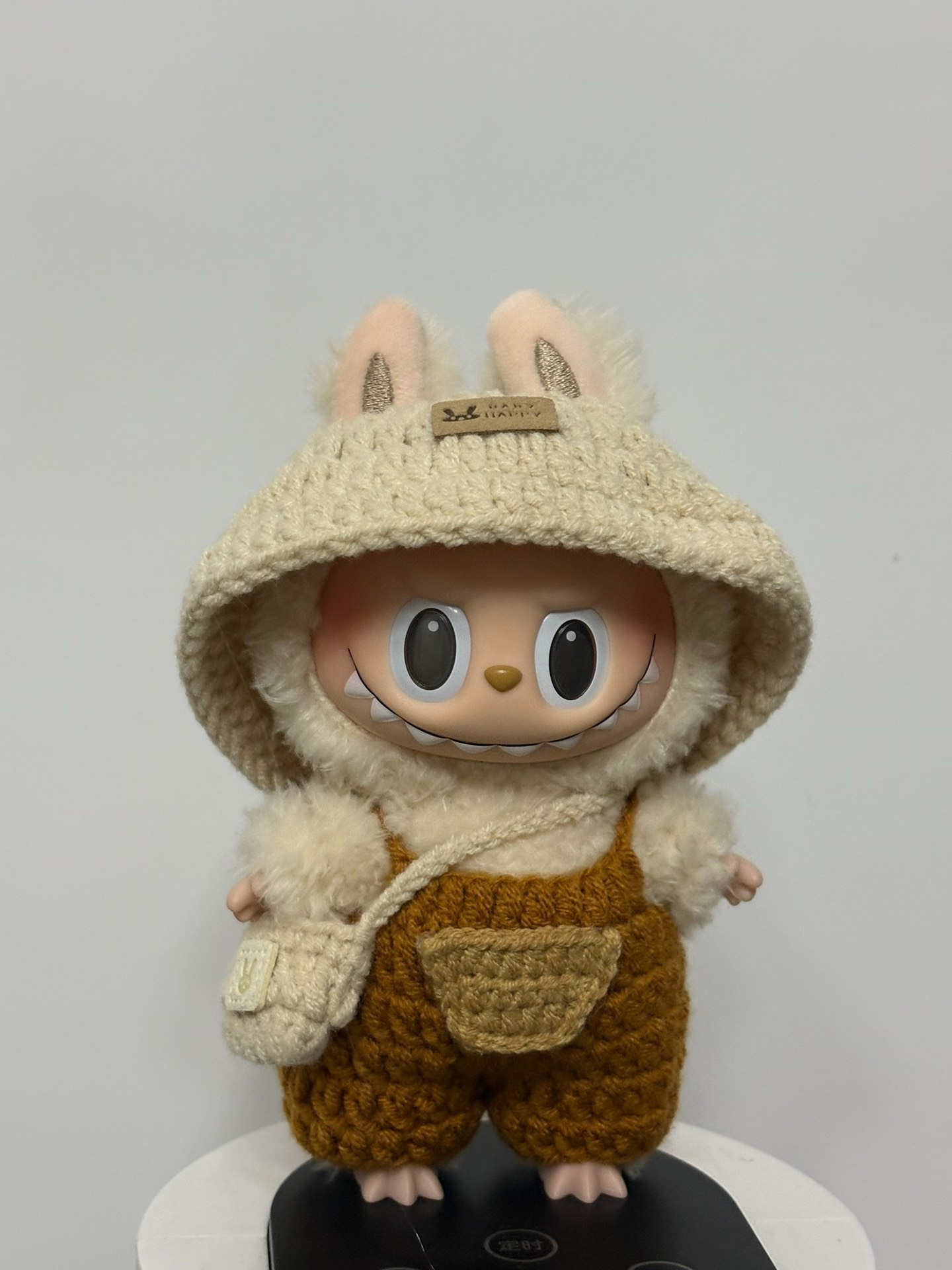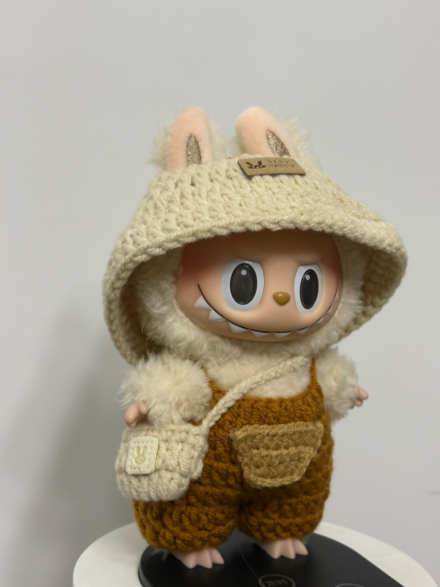 Whimsical LABUBU Bunny Outfit – Cozy Knit Hood & Orange Overalls for Playful Adventures