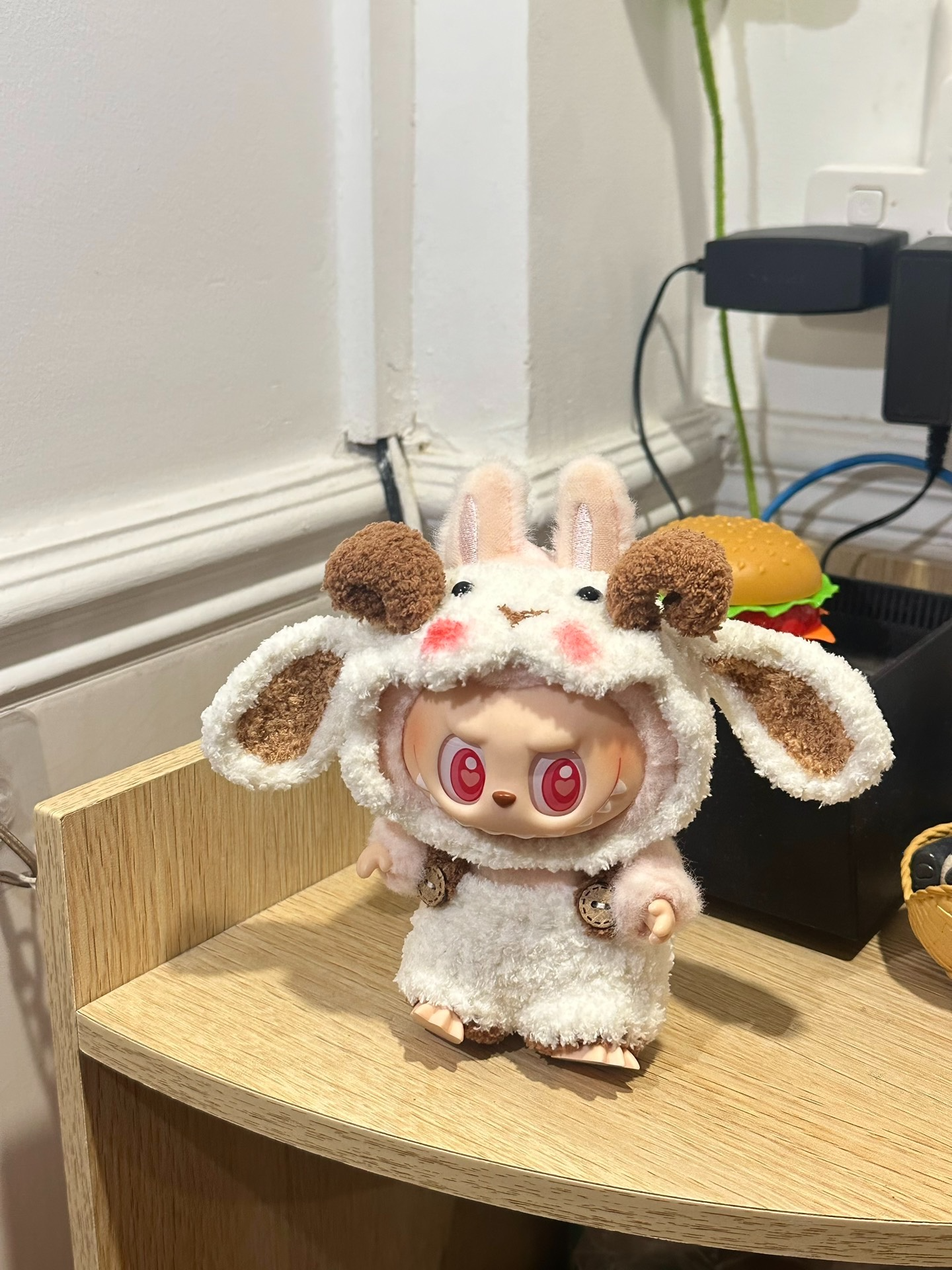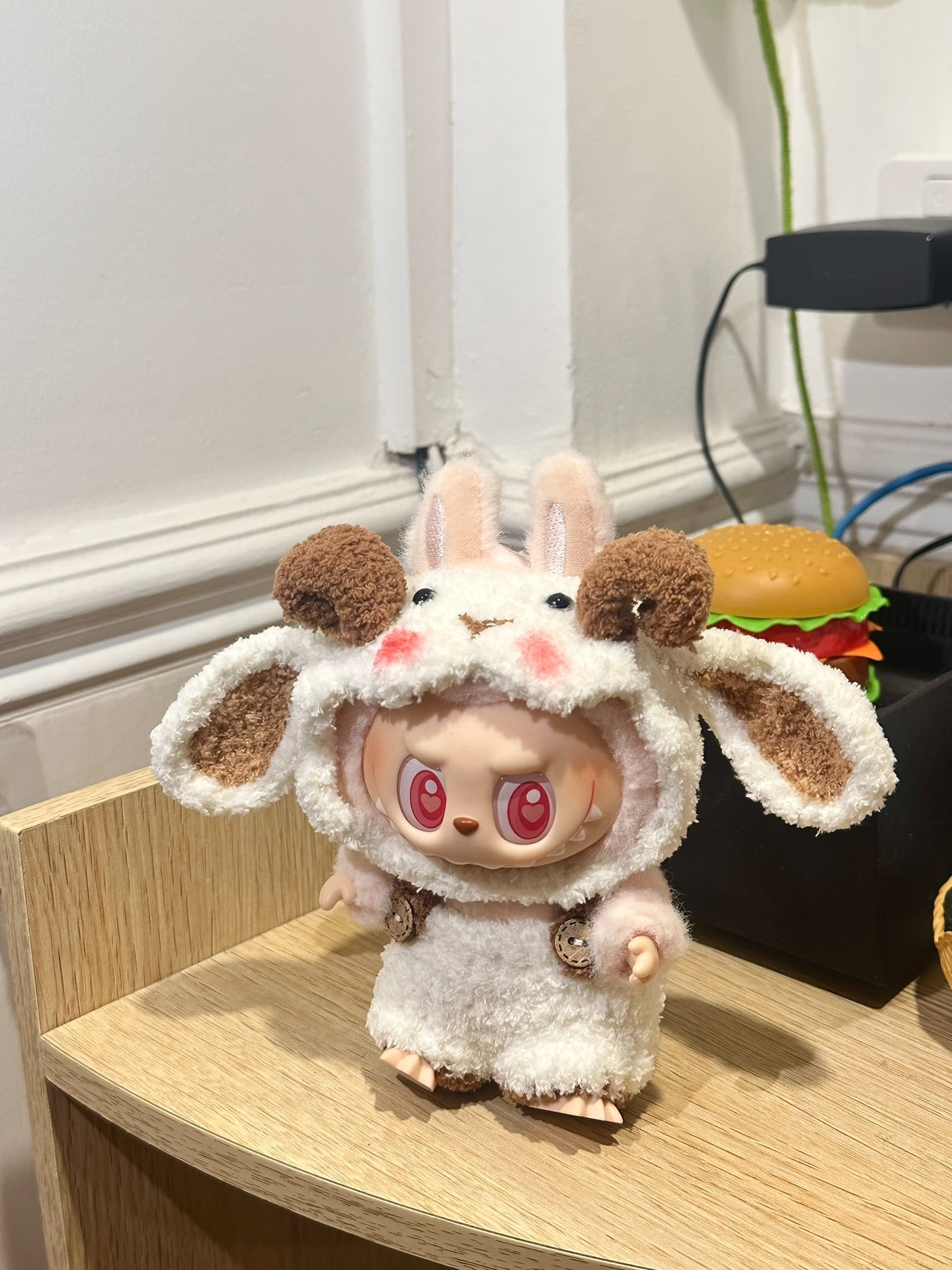 Charming LABUBU Bunny Outfit: Plush Jumpsuit & Headpiece for Collectible Dolls – Soft, Durable & Whimsical!