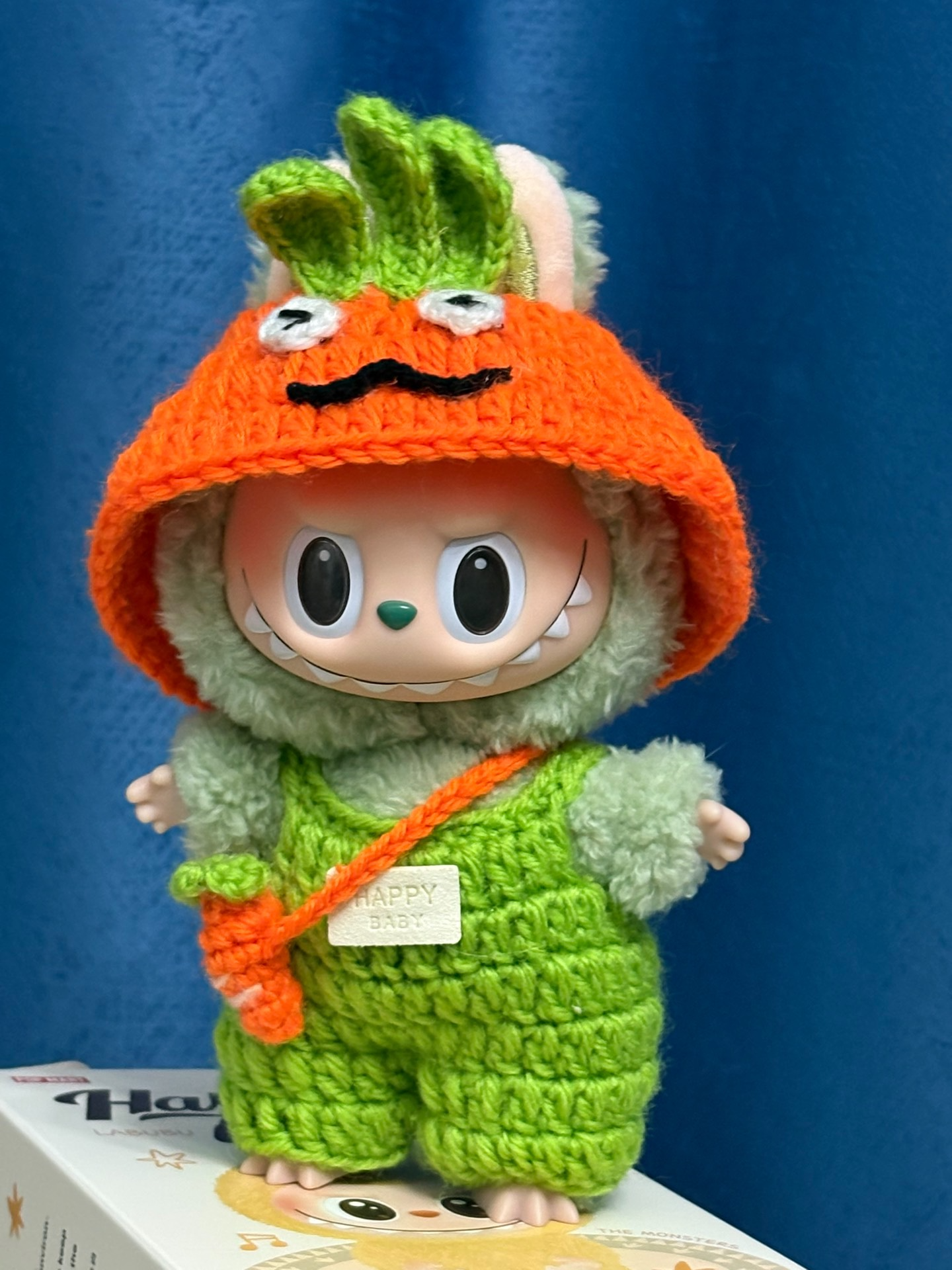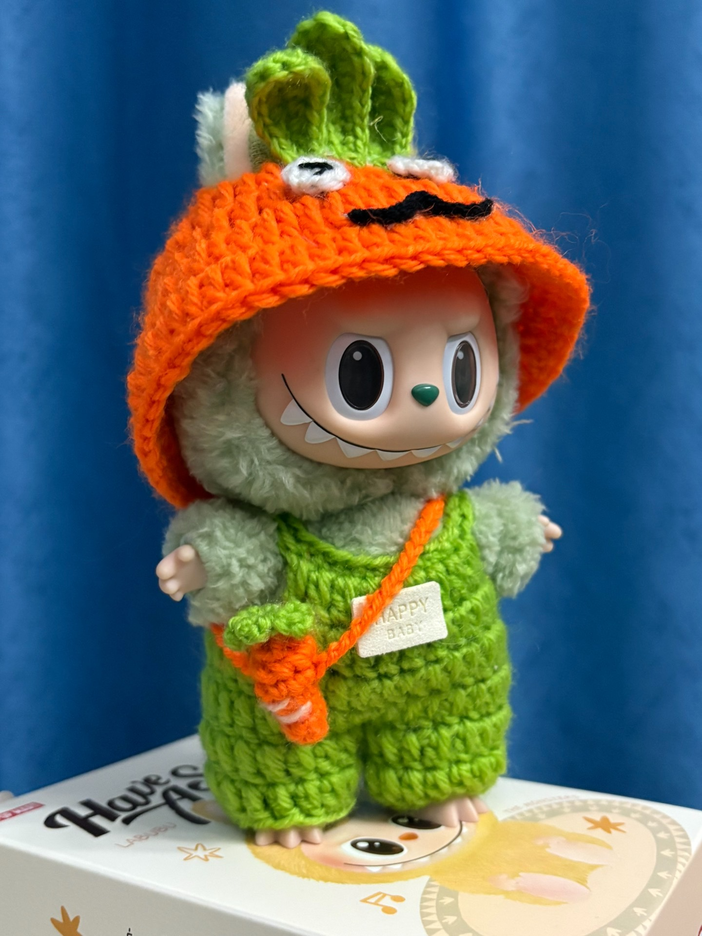 Adorable Labubu Carrot Costume – Vibrant Orange & Green Outfit for Playful Doll Styling