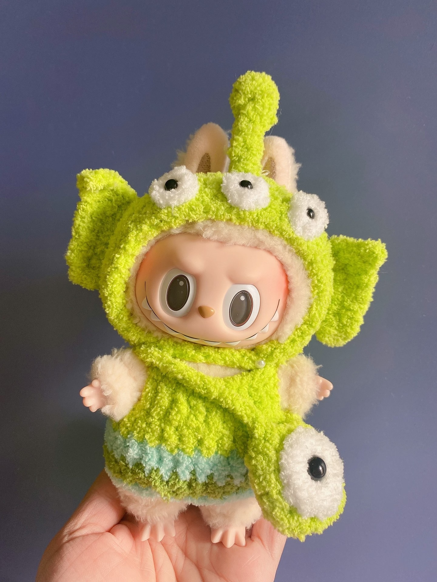 Whimsical Labubu Doll Outfit – Vibrant Green & White Customizable Plush Set for POP MART Fans